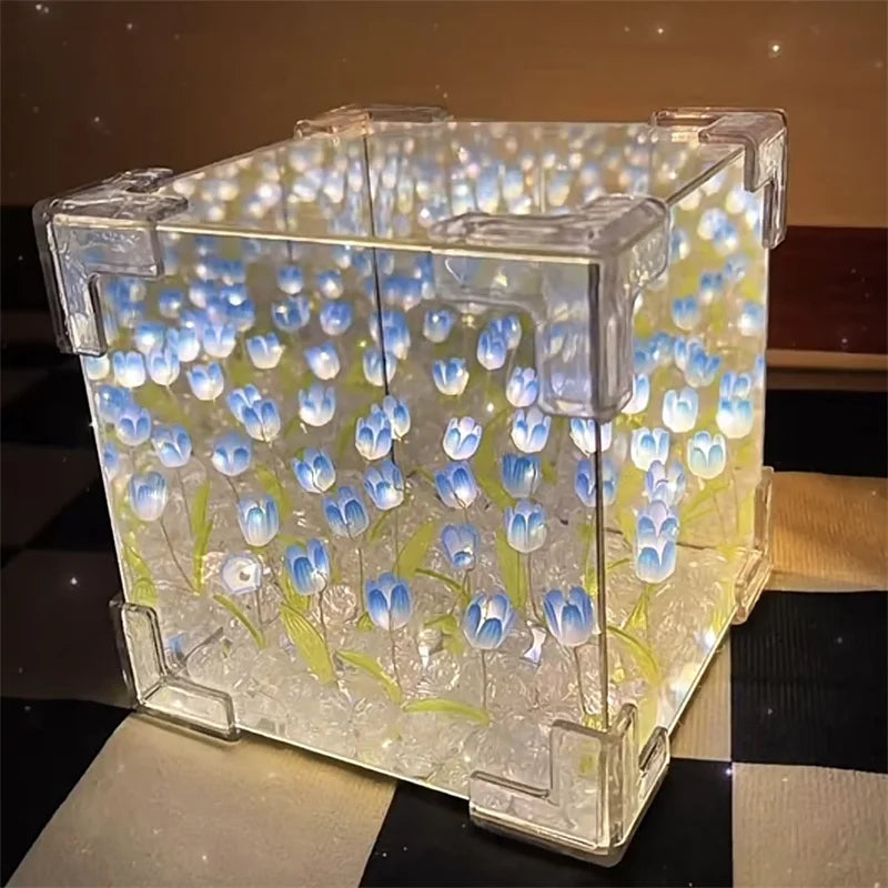 3. Steps: String the petals with string lights, then use leaves, stones, simulated grass, etc. to paste the petals inside the transparent box, and then decorate with butterflies.